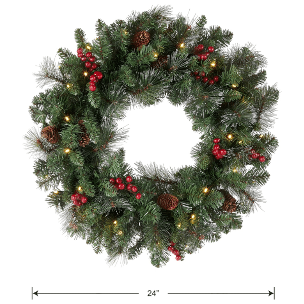 24 Inches Pre-Lit Artificial Christmas Wreath