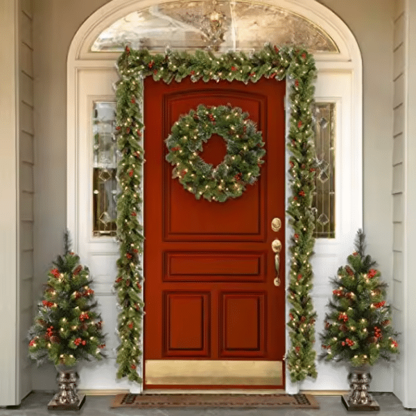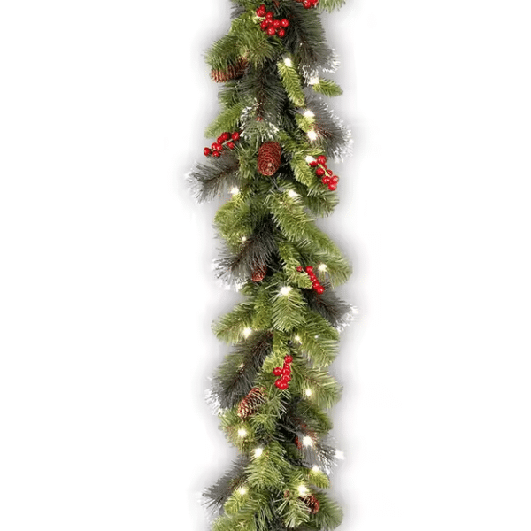 Beautifully crafted with lush Crestwood Spruce branches, pine cones, and frosted tips for an authentic winter look. Every detail enhances your home’s festive atmosphere.