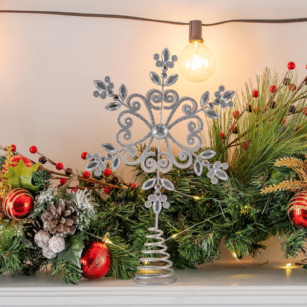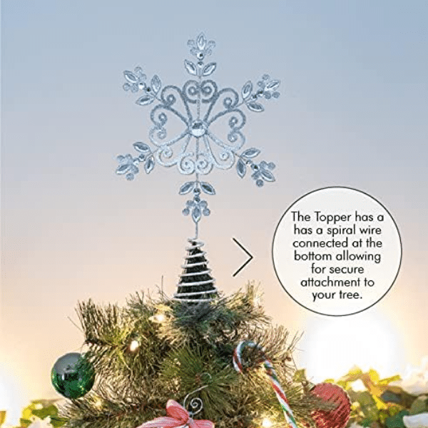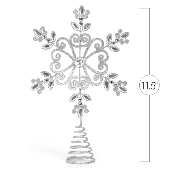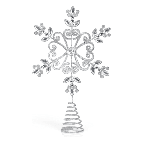 Crafted from durable metal with a classic silver finish, this snowflake treetop adds a sophisticated touch to your Christmas décor.