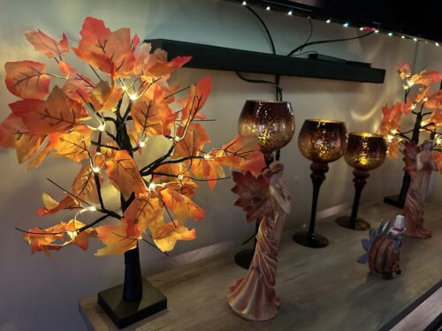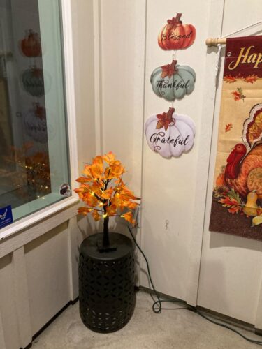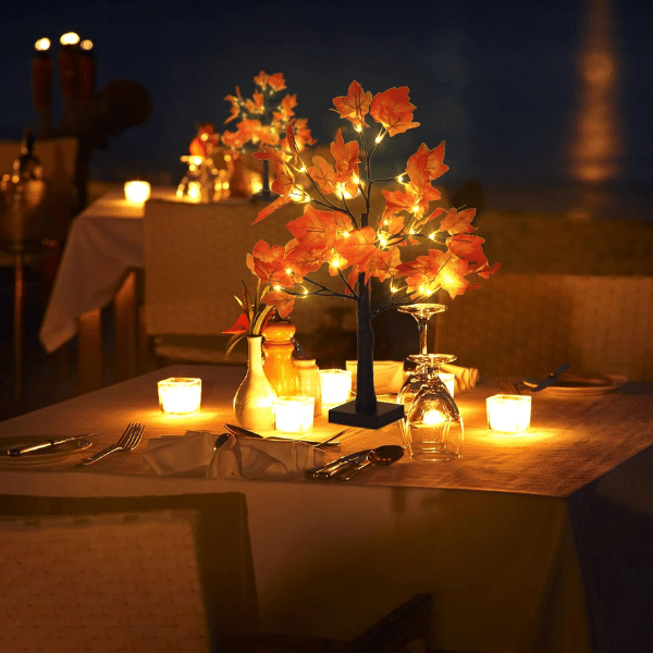 Standing 24 inches tall, each maple tree features 24 warm white LEDs that light up your room with a gentle, golden radiance. Powered by 3 AA batteries (not included) or USB cable, this tree offers flexible placement anywhere — no outlet required! Perfect for a desktop display, centerpiece, or festive decoration.