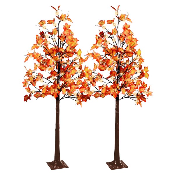 2 Pack Fall Lighted Maple Tree 48 LED Lights