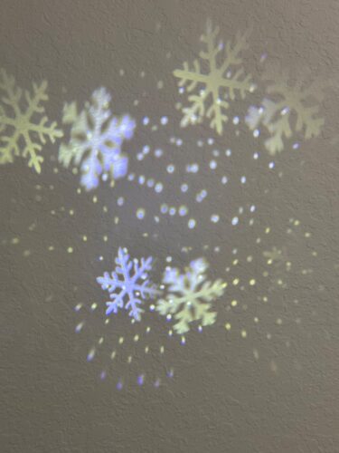 Equipped with high-quality LED projector lights, the topper rotates 360° to project dancing snowflakes onto your ceiling.